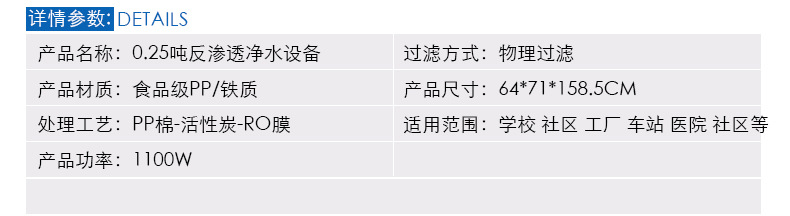 产品名称:0.25吨反渗透净水设备